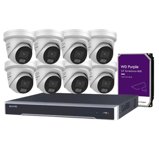 Hikvision 8-Camera 6MP Smart Hybrid Light CCTV Kit with 8CH NVR + HDD – DS-2CD2T67G3-LIS2UY & DS-7608NI-M2/8P