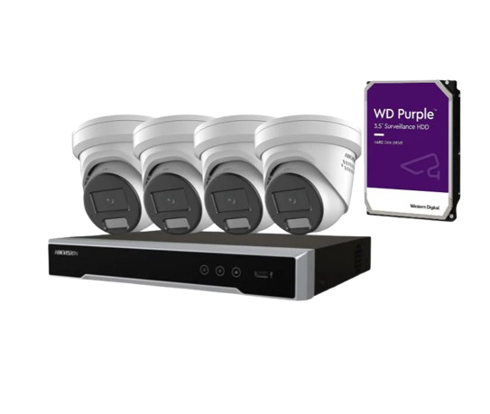 Hikvision CCTV Kit 8MP 4x ColorVU with Strobe Cameras 4-Channel NVR + HDD (DS-2CD2387G2H-LISU)