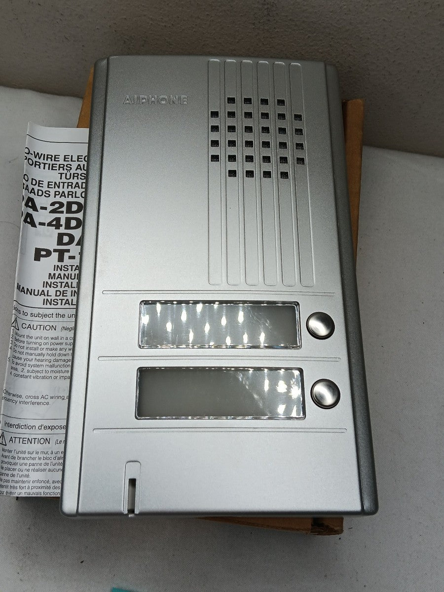 The Aiphone DA-2DS 2-wire audio door station is a professional-grade 2-button surface-mount intercom designed for apartment, residential, and commercial entry security. Featuring mechanical call buttons, durable silver metal construction, and dry contact lock output, this 15VAC system delivers secure and reliable visitor communication.