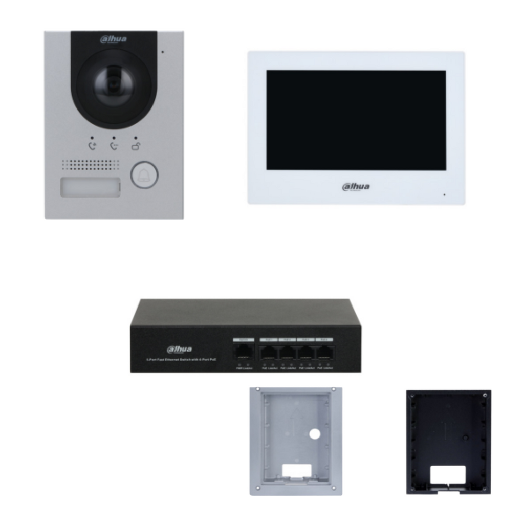 The Dahua DHI‑KTP01L‑AUS Flush Mount Kit is a complete IP villa video intercom and access control solution designed for superior security and convenience. Featuring a 2MP low‑illumination outdoor door station, a 7″ capacitive touchscreen indoor monitor, and a robust PoE switch — this comprehensive kit offers crystal‑clear 2‑way communication, remote door unlocking via app, PoE installation simplicity, and rugged IP65/IK07 weather protection. Perfect for homeowners and small commercial properties in Australia and New Zealand seeking reliable video intercom with integrated access control.