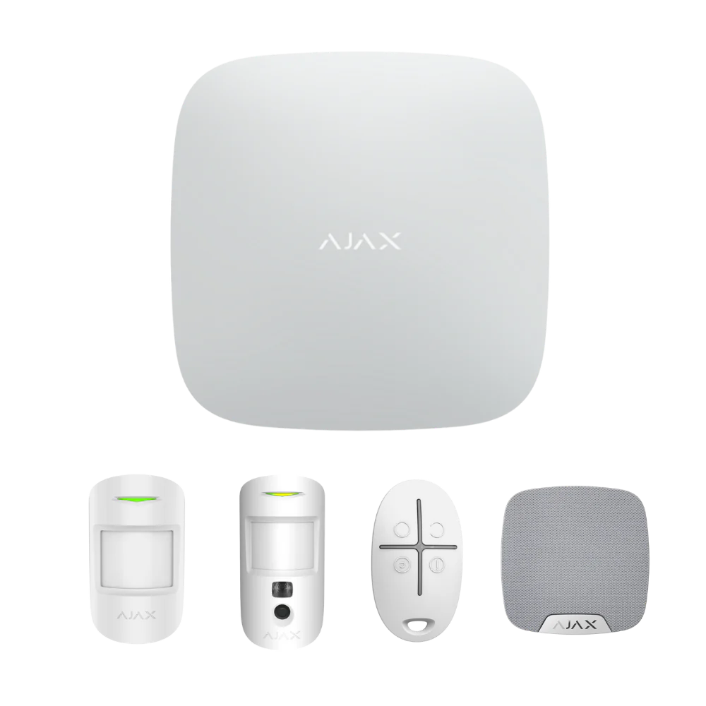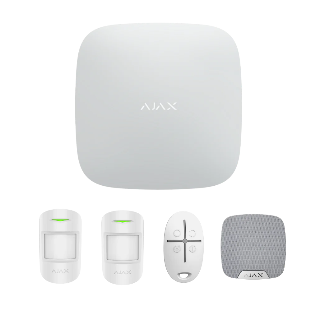 StarterKit includes: 1 x Hub2 AJAX#35992, 2 x Motion Protect AJAX#30655, 1 x Space Control AJAX#30670, 1 x Home Siren AJAX#30630