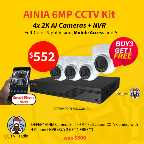 OFFER* AINIA Camera kit 4x 6MP Full colour CCTV Camera with 4 Channel NVR (BUY 3 GET 1 FREE**)