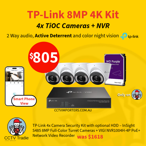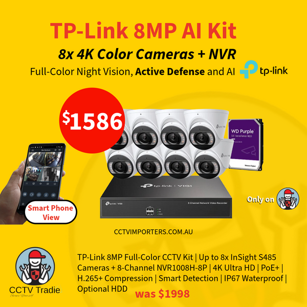 TP-Link 8MP Full-Color CCTV Kit | Up to 8x InSight S485 Cameras + 8-Channel NVR1008H-8P | 4K Ultra HD | PoE+ | H.265+ Compression | Smart Detection | IP67 Waterproof | HDD Included