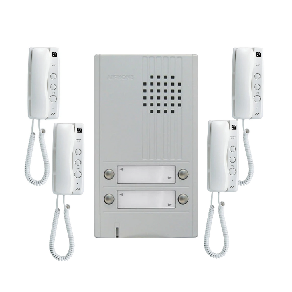 The Aiphone Intercom Kit combines the durable Aiphone DA-4DS 4-button audio door station with 4 × Aiphone GT-1D audio tenant handsets, delivering a complete multi-tenant entry communication solution for residential and commercial properties.