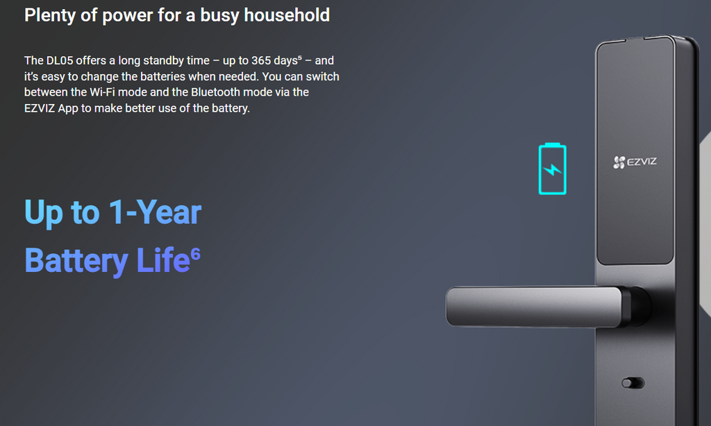 EZVIZ DL05 Smart Fingerprint Lock – Keyless Entry Wi‑Fi & Bluetooth Smart Door Lock with App Control, IP65 Weatherproof, Temporary Codes & Anti‑Peeping Security