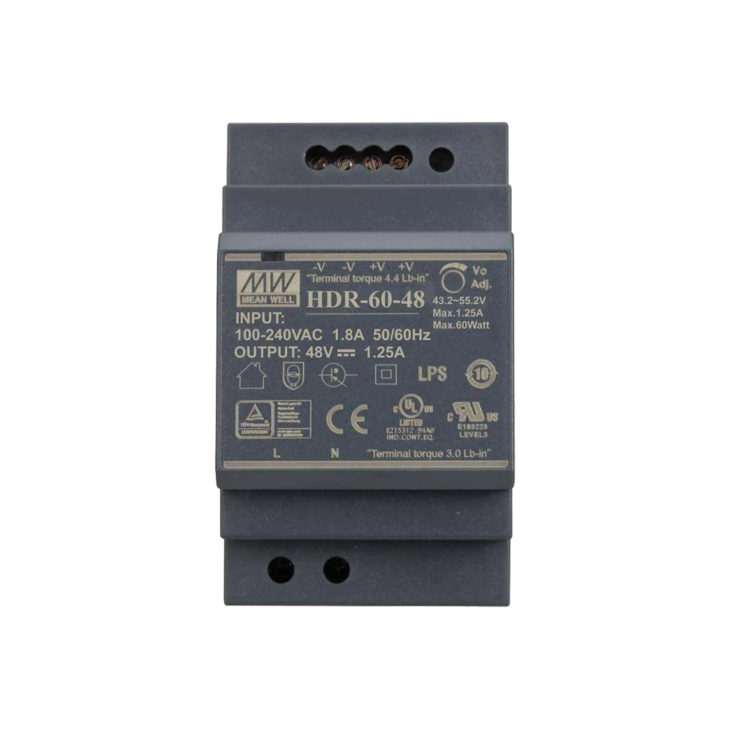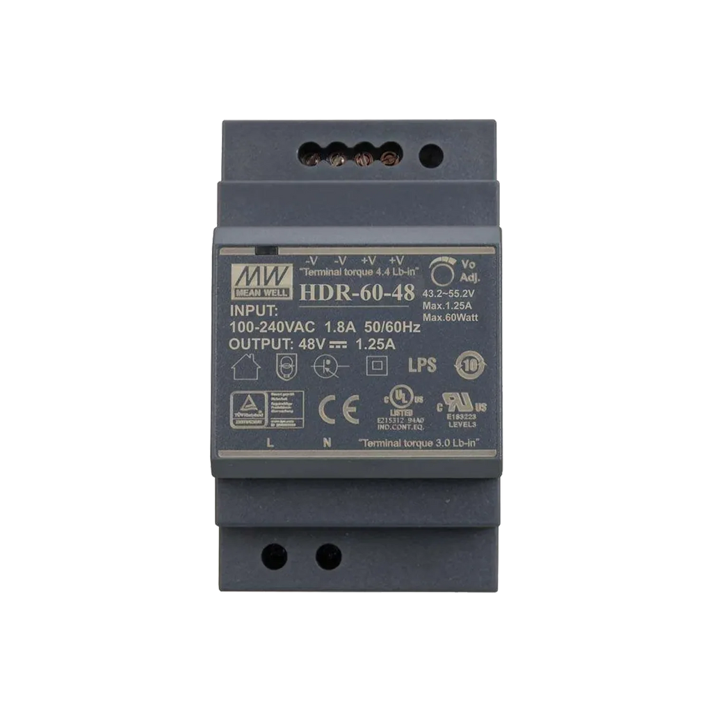 HDR-60-SPEC Power Supply Unit for Akuvox NS-2 – 54VDC 1.25A Output, 100–240VAC Input, DIN Rail Mountable
