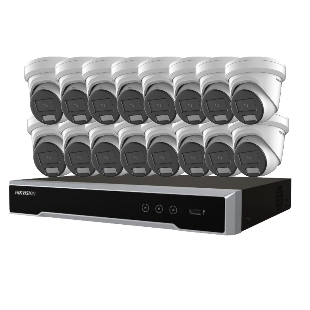 High-performance 6MP surveillance kit featuring 16 Darkfighter AcuSense turret cameras and a powerful 8K-ready 16-channel NVR — ideal for large-scale security in commercial, retail, industrial, and multi-site environments.