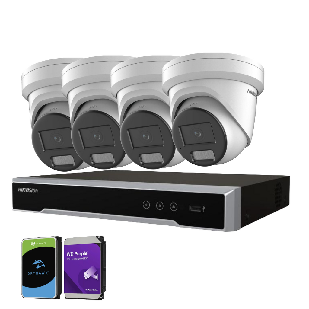 Enhance your security setup with the Hikvision 6MP Darkfighter AcuSense Turret Camera Kit featuring the DS‑2CD2366G2H‑I(U) network camera and a DS‑7604NI‑M1/4P 4‑ch PoE NVR. Designed for high‑resolution imaging, powerful low light performance, robust AI human/vehicle detection, and reliable PoE recording, this all‑in‑one kit delivers professional surveillance for homes, offices, retail, and small‑to‑medium business environments. Built‑in mic, IP67 weather resistance, advanced compression, and deep learning analytics make this an ideal future‑ready security solution.