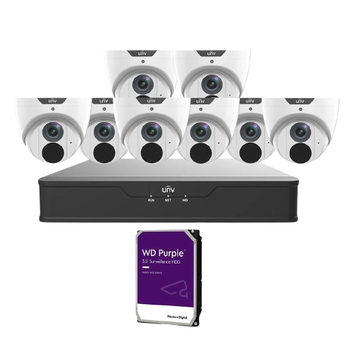 Uniview OWLVIEW 8MP 4K CCTV Kit – 8x Turret Cameras + 8-Channel PoE NVR with HDD | IPC3628LE-ADF28K-WP + NVR301-08B-P8-IQ