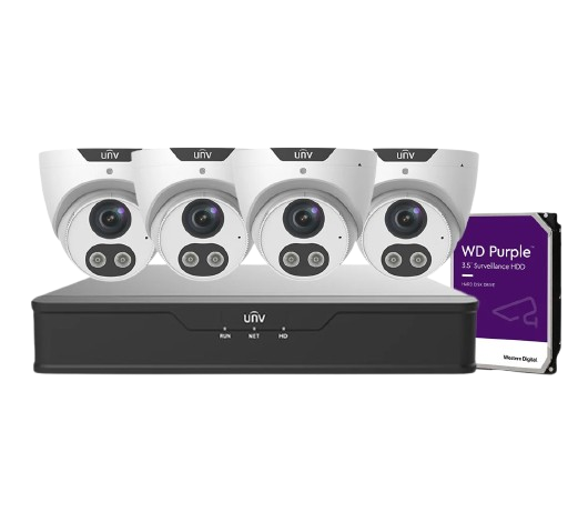 UNIVIEW 4x OwlView 6MP TURRET CCTV Cameras, 4 Channel Surveillance Kit with HDD