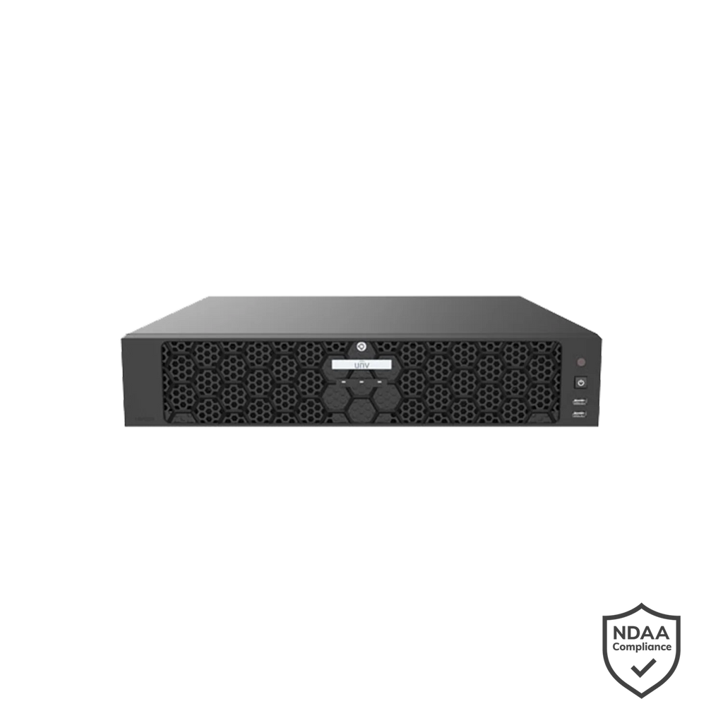 The Uniview NVR508-64E-IQ 64 Channel Network Video Recorder is a high-capacity professional surveillance recorder built for demanding commercial and enterprise CCTV systems. Supporting Ultra 265, H.265, and H.264 compression, this powerful 64-channel NVR records up to 32MP resolution for exceptional image detail while improving storage efficiency. With dual HDMI and dual VGA outputs, 8 SATA bays supporting up to 16TB per drive, RAID 0/1/5/6/10, and advanced smart analytics support, the Uniview NVR508-64E-IQ is ideal for large sites that need reliable, scalable, and intelligent video recording. Designed for integration with ONVIF Profile S, G and T compliant cameras and RTSP streams, this NVR is a strong solution for enterprise-grade monitoring. (HDD not included.)