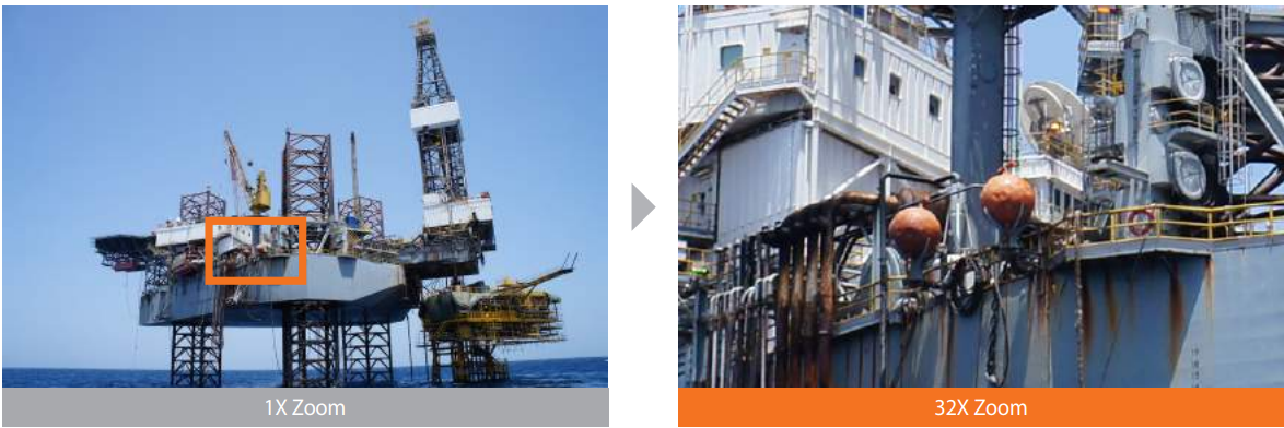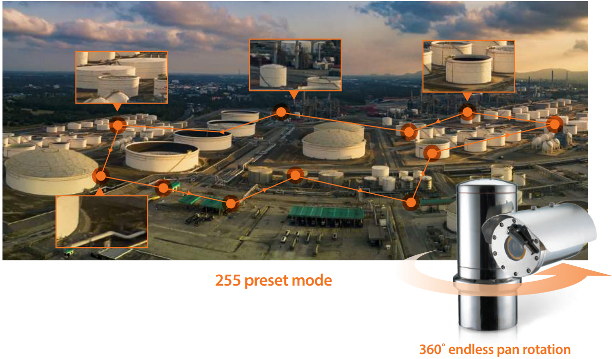 Wisenet explosion-proof camera is capable of monitoring a broad range, with its 360˚ endless pan and 180˚ tilt